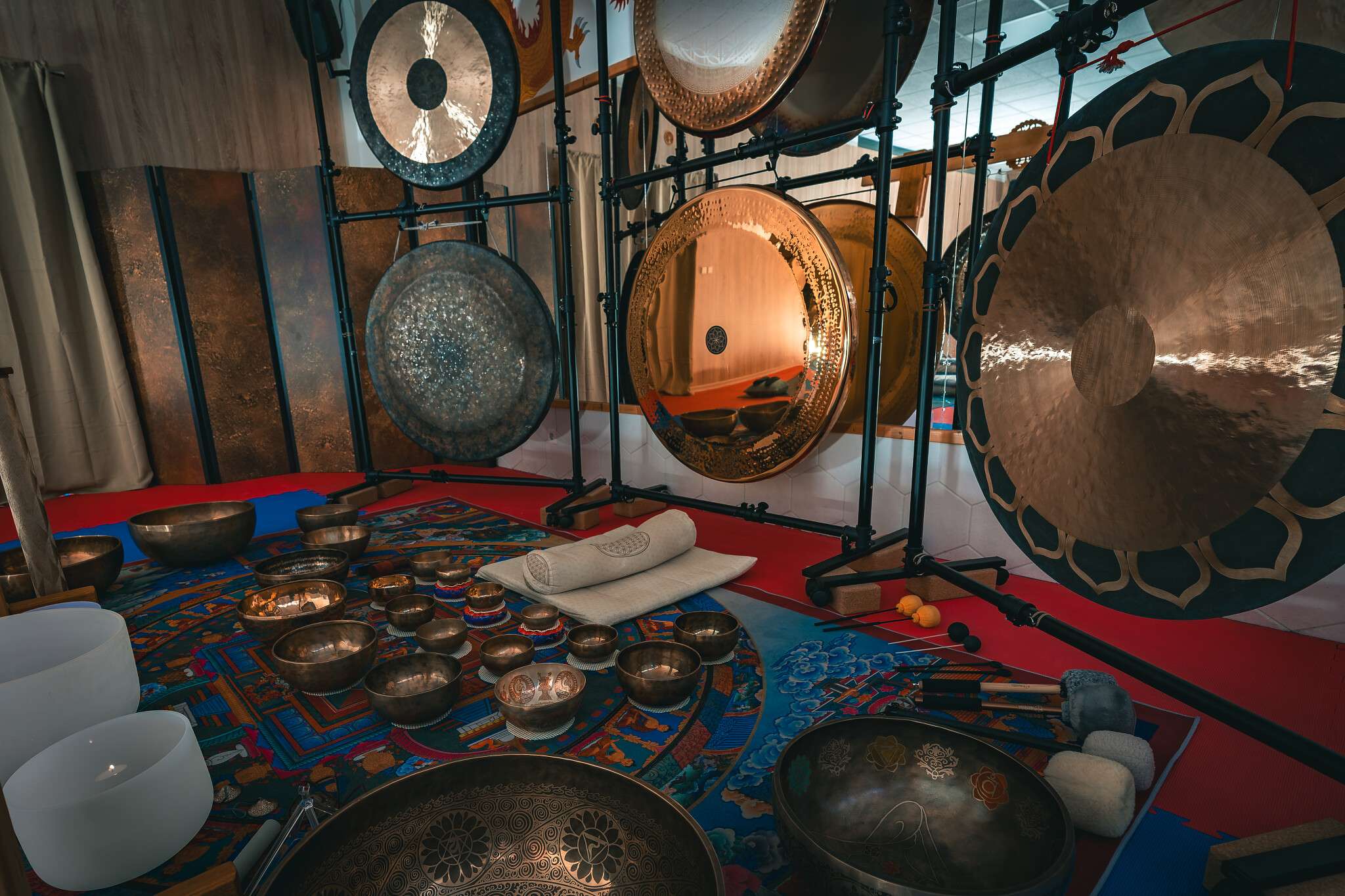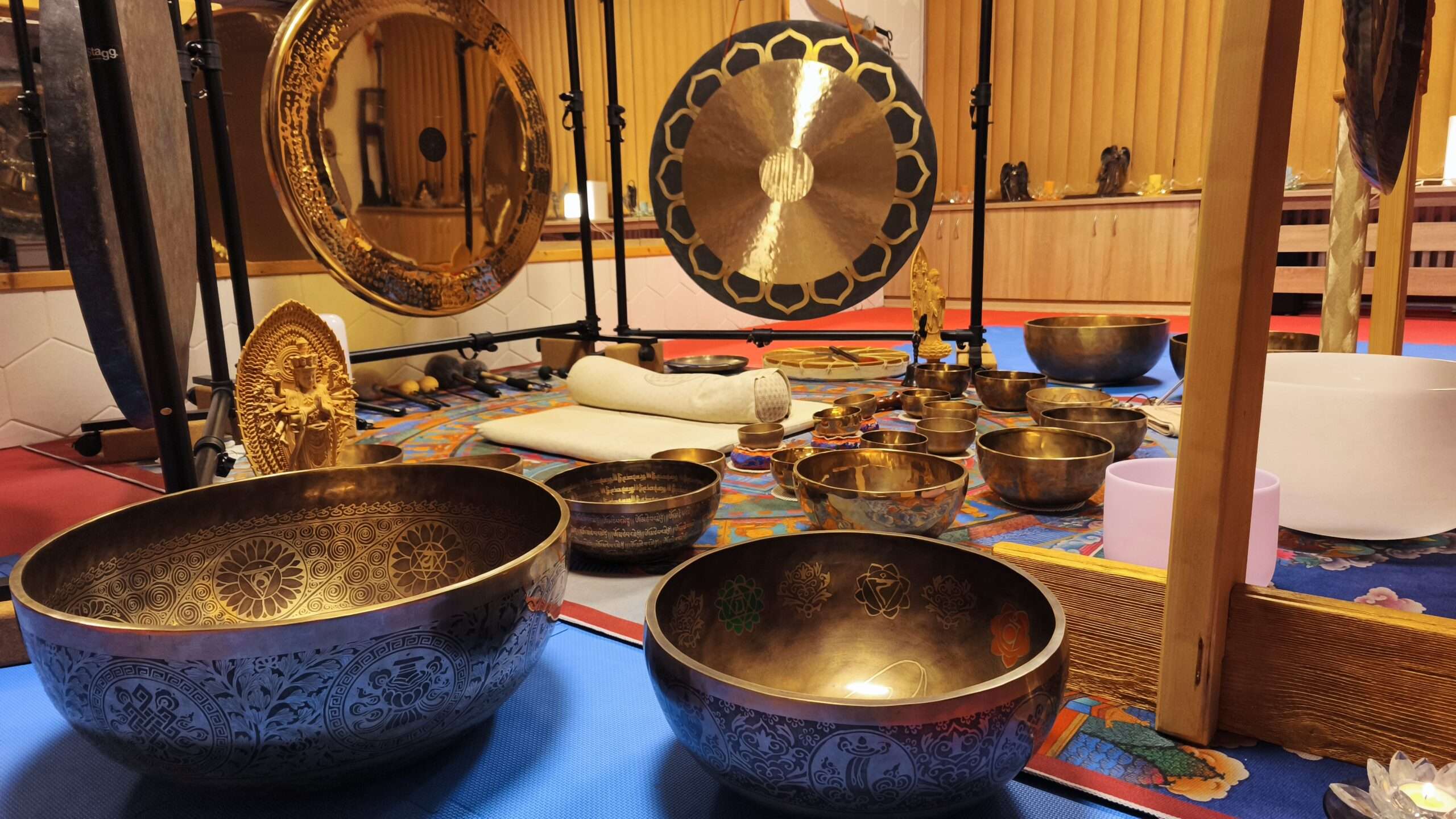 Zvukové vlny tibetských mís, gongů nebo třeba zvonečky tingshe pomáhají snižovat hladinu stresu, uvolňují napětí a přinášejí pocit klidu. Vibrace působí na tělo i mysl, čímž podporují relaxaci.