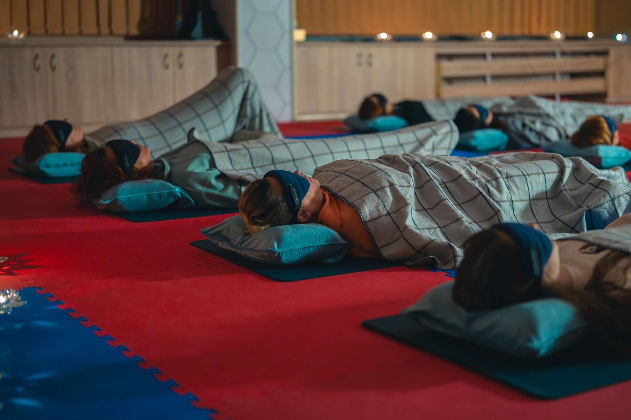 Na muzikorelaxacích s Markem budete mít připravených 18 míst s jógamatkou, na které najdete polštář z paměťové pěny pod hlavu, maskou na oči, bolster pod kolena k uvolnění bederní oblasti a deku pro příjemné teplo v průběhu.